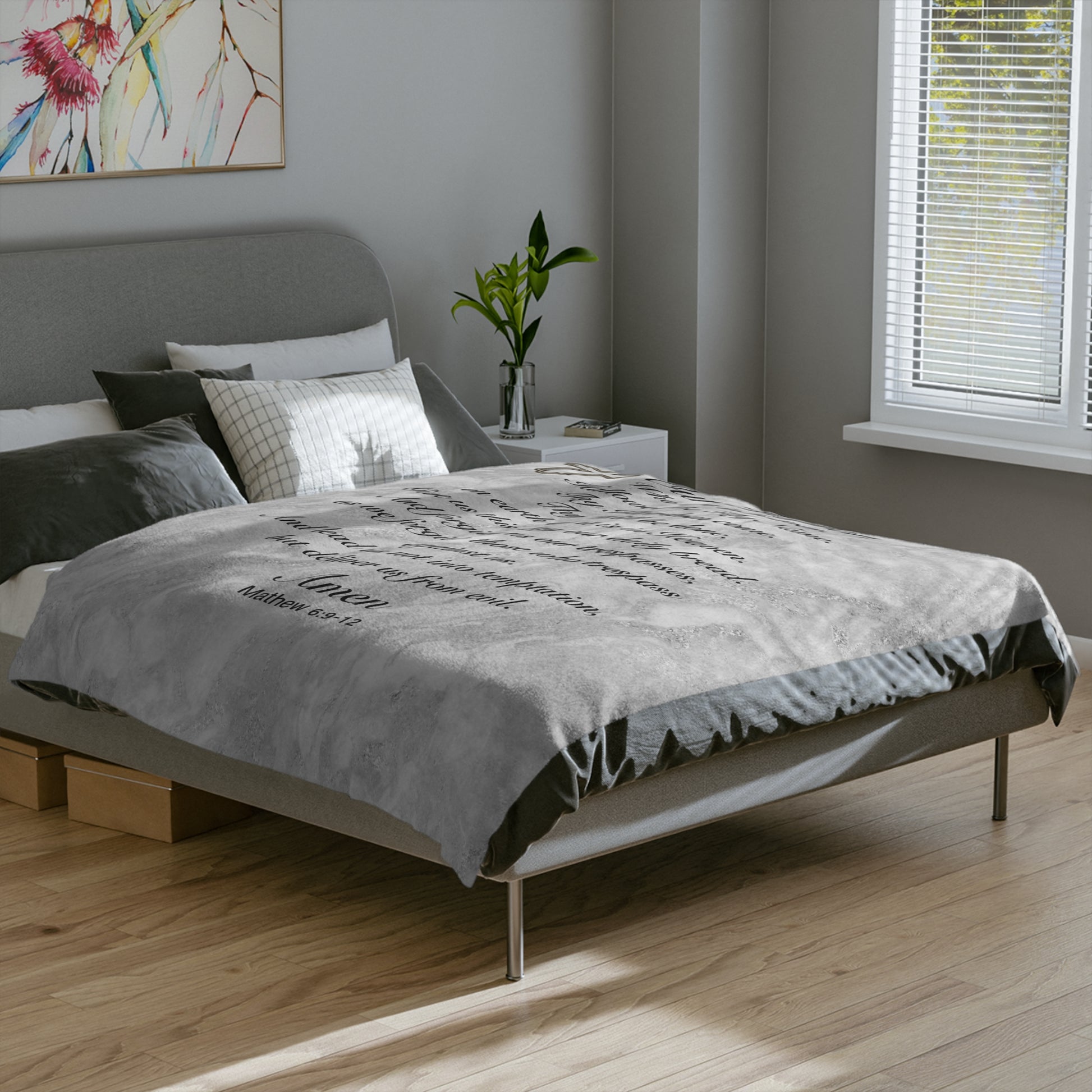 The Lord’s Prayer Marble Gray Minky Blanket