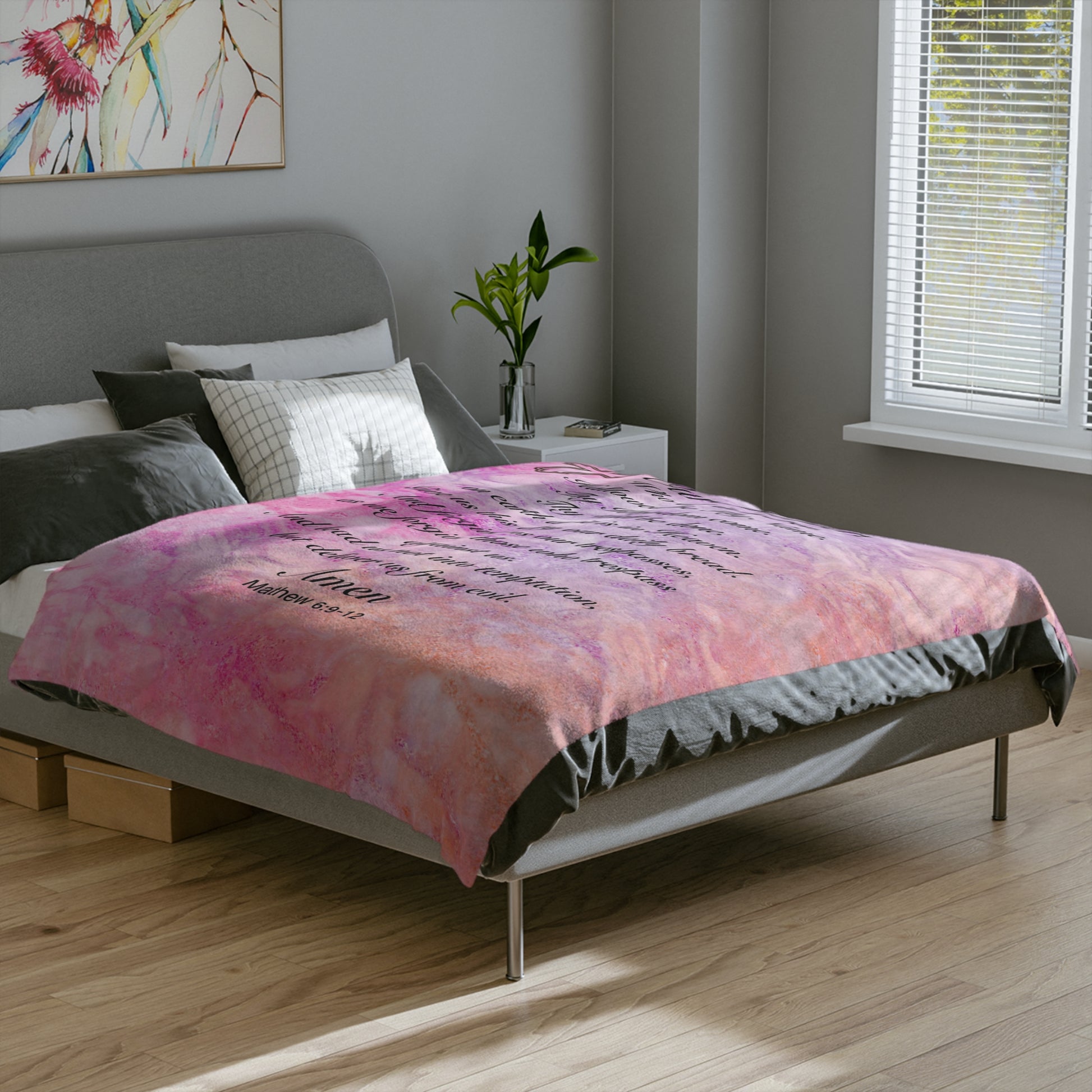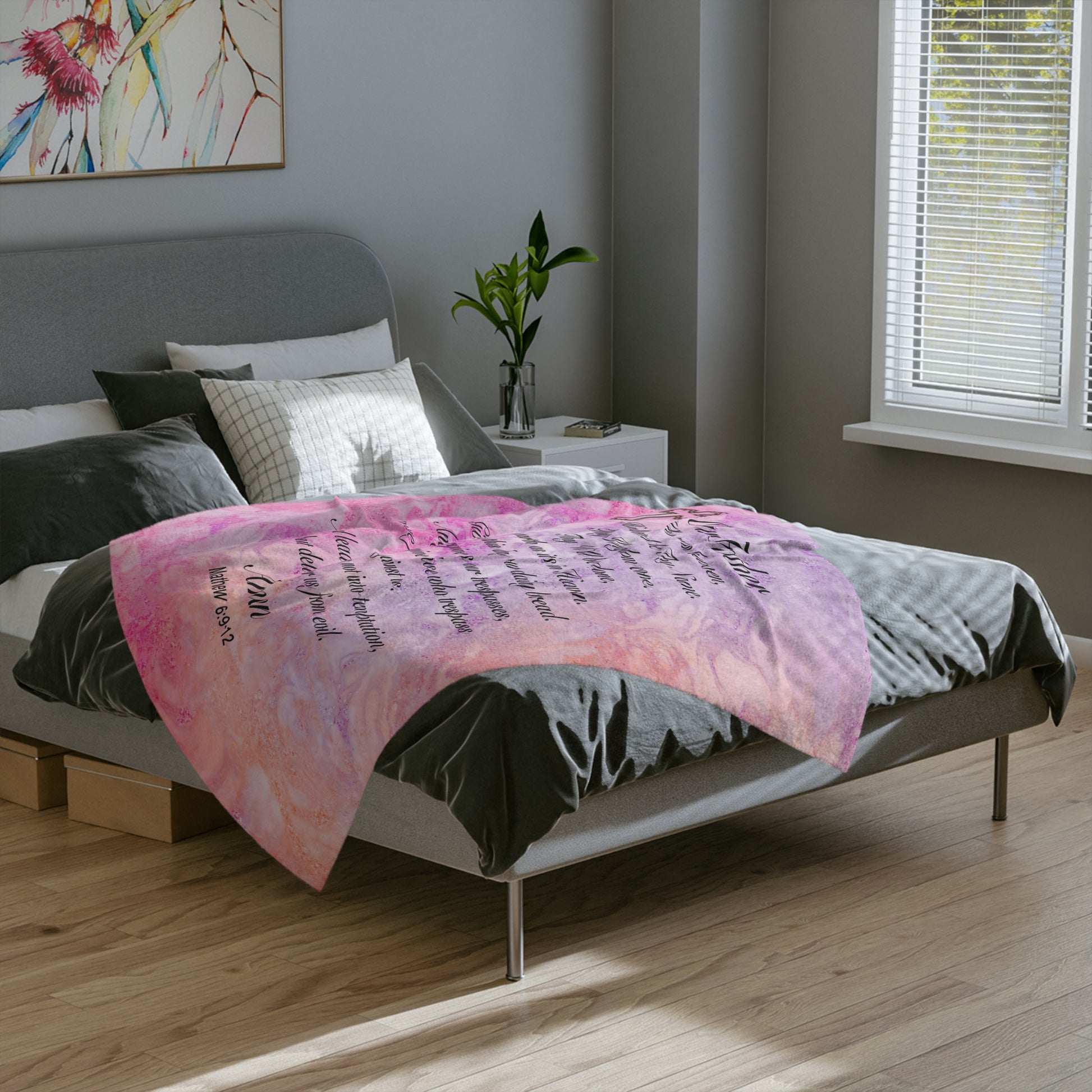 The Lord’s Prayer Marble Pink Minky Blanket