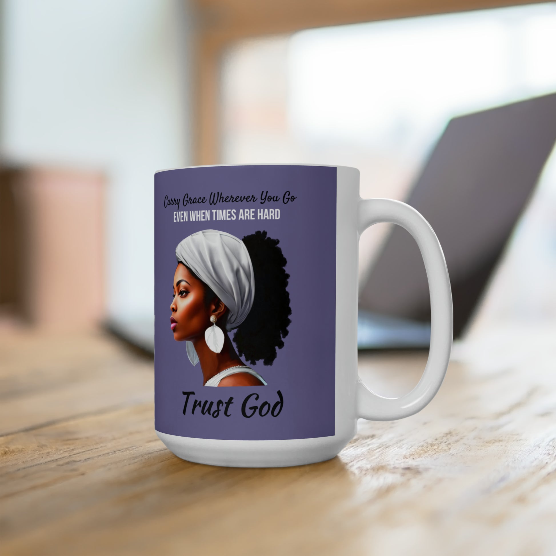 Trust God Ceramic Mug 15oz Lavender