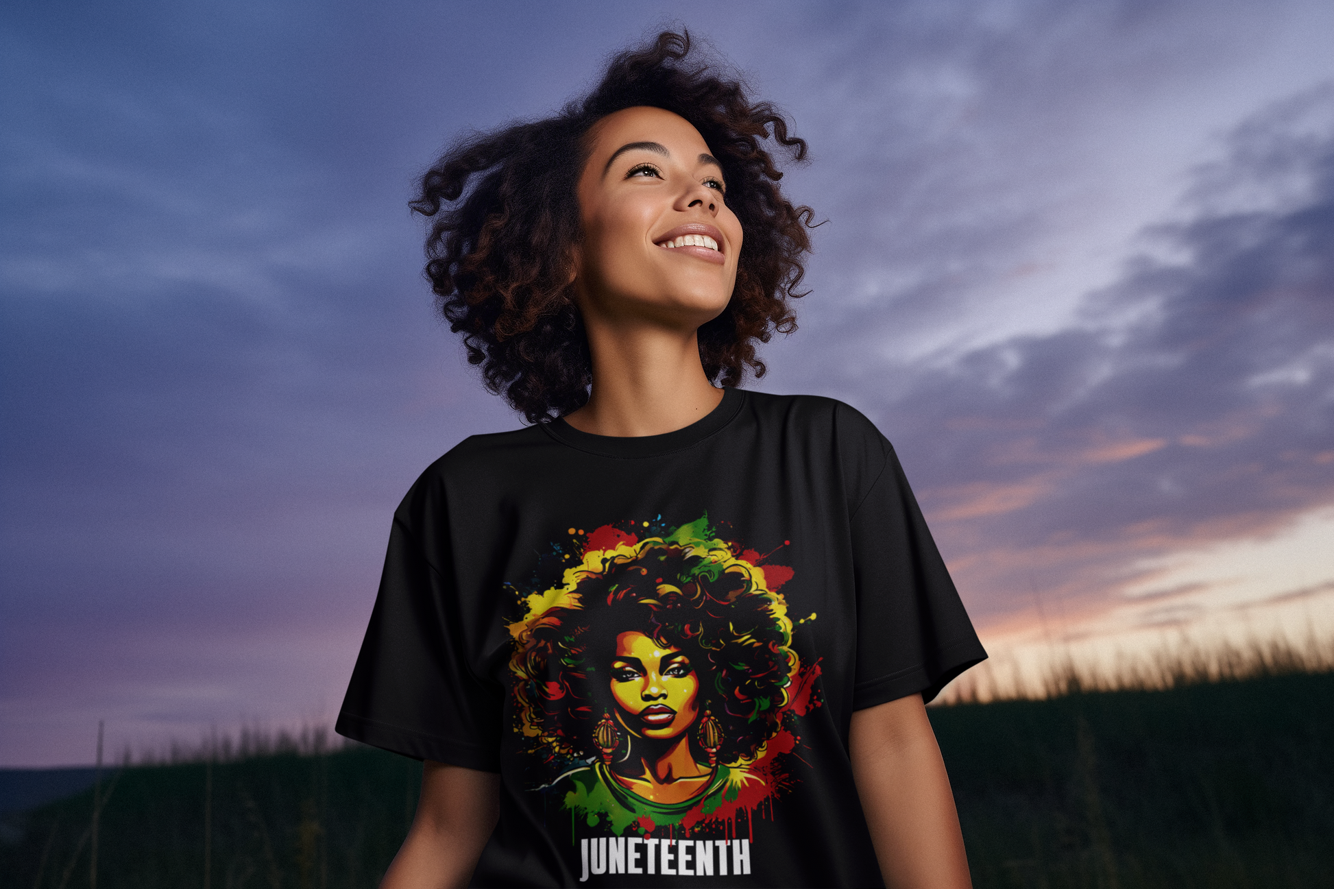 Celebrate Juneteenth with this stunning women's design. It features a large print and is perfect for leisure or activities. Available in multiple sizes to suit every woman.