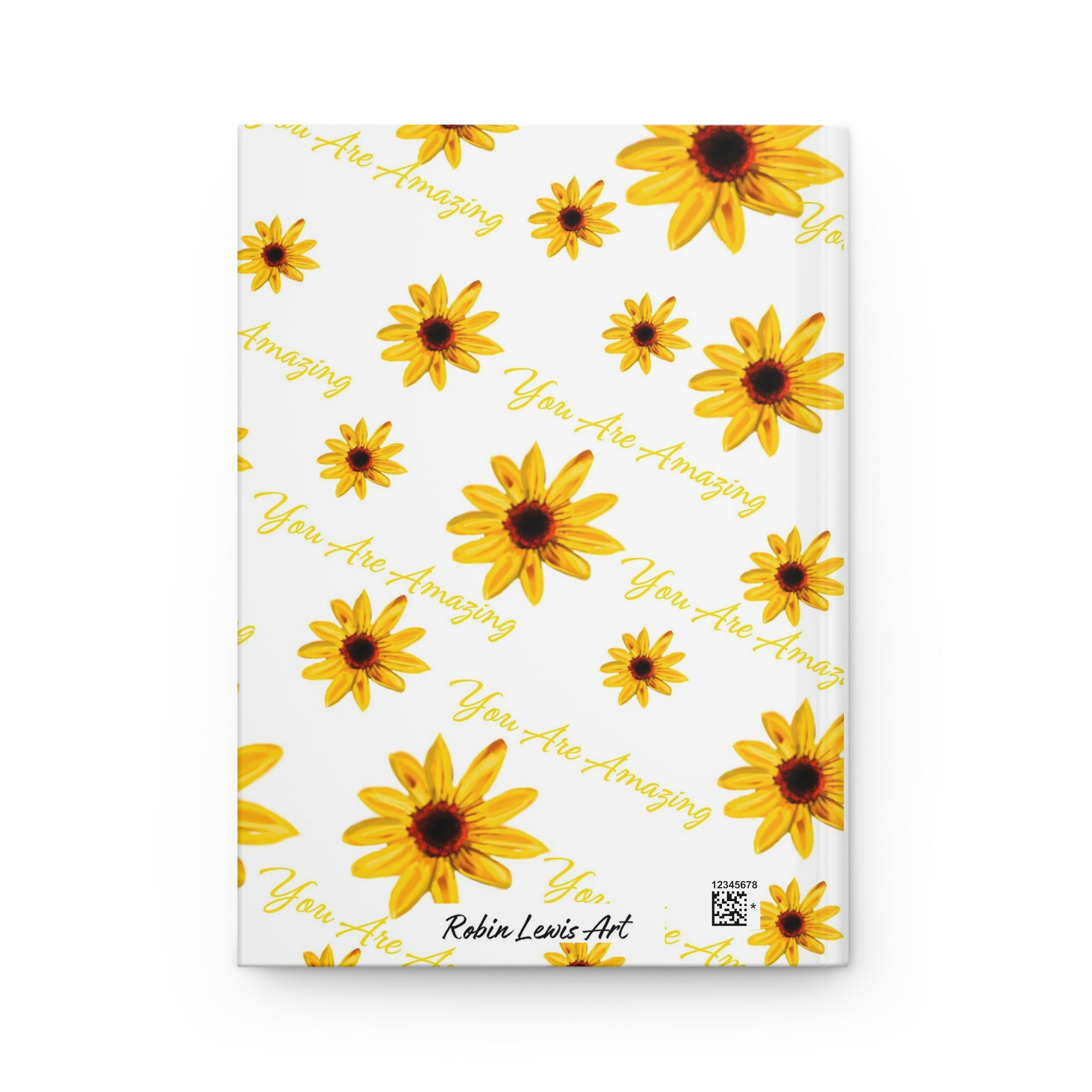 Elevate your daily journaling with this positive affirmation sunflower journal, adding a touch of personalization, privacy, and style. It's hard covered and offered in a convenient 5.75"x8" size . This journal contains 150 lined pages for your thoughts and reflections.